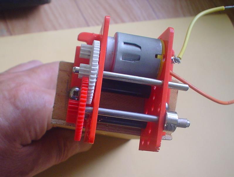 Il peut fonctionner de 1.5 à 4.5 volts entre 4000 et 14 000 trs/mn, le module des roues dentées est de 0.5 et le rapport choisi au montage est de 25 : 1.