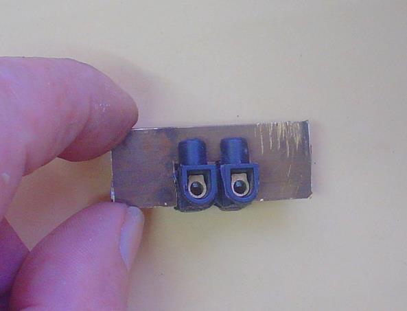 | Soudure à l'étain de dominos sciés en deux. Un seul suffira dans le montage présent, mais ... une autre idée pourrait rendre l'autre nécessaire ... |