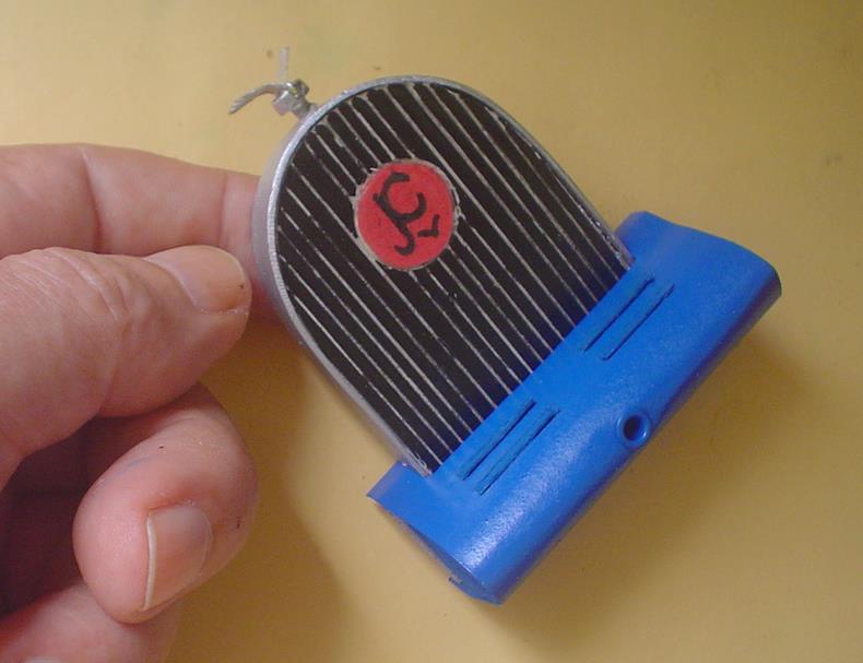 Il se prolonge vers l'avant et donne à cette voiture tout son charme. Réalisation avec du bristol et un bloc de balsa. Il faudra ajuster avant collage pour que l'ensemble - calandre-radiateur - fasse partie de la carrosserie. |